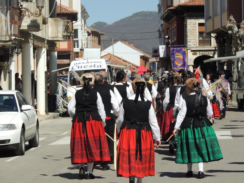 La agrupación compuesta de hombres y mujeres en traje regional,