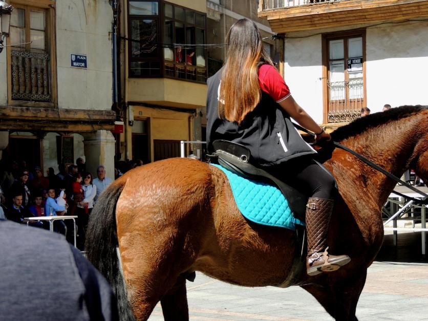 Mujer montando un hermoso caballo bayo,