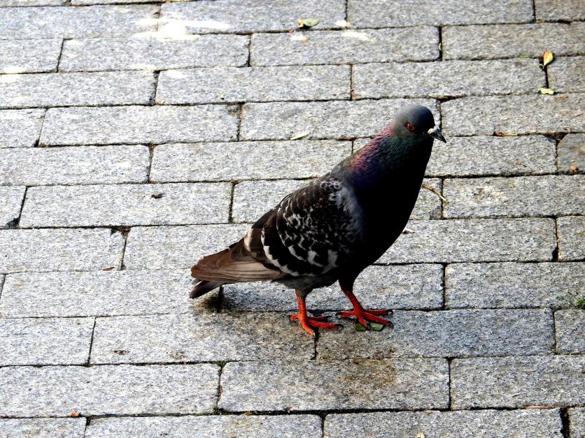 Una paloma buscando comida en un lugar céntrico,