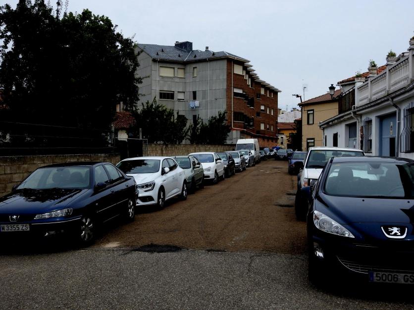 La calle del Cuérnago a pesar del aparcamiento de su plaza, colmada de coches,