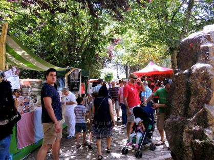 Explorando la Feria con su retoño,