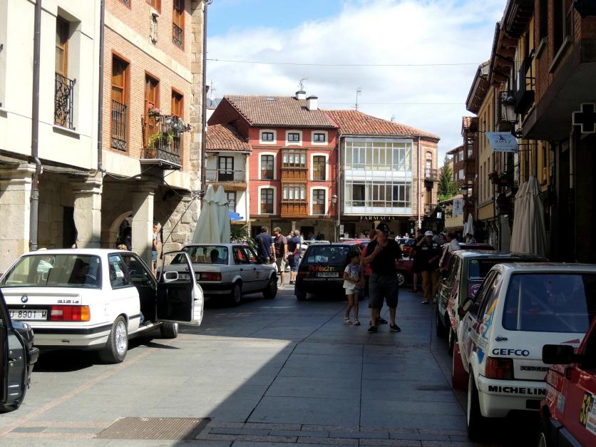 La plaza Mayor atestada de coches y de gente,
