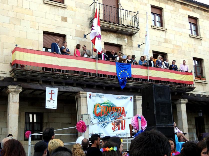 Pleyade de autoridades en el balcón del Ayuntamiento,