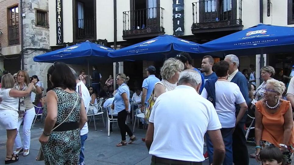 La gente espera el Pregón en las terrazas de la Plaza Mayor,