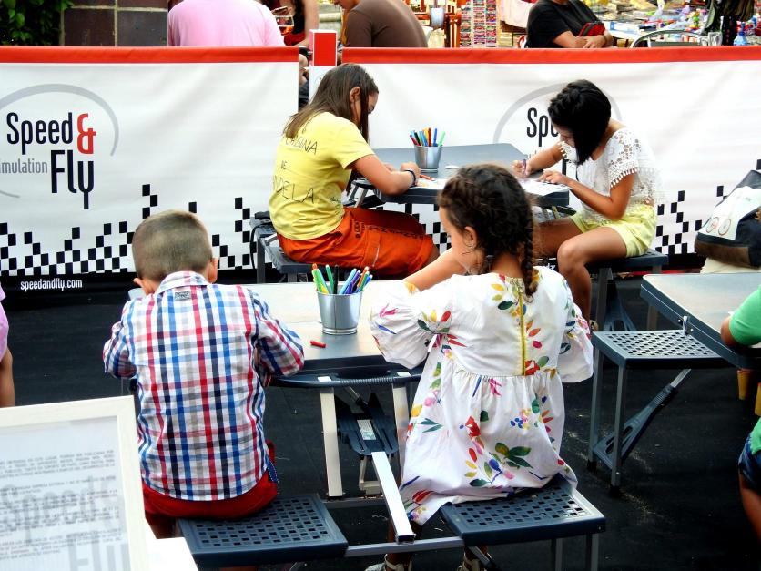 Niños y niñas pintando con lápices de colores,