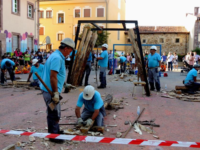 Entibadores trabajando los troncos,