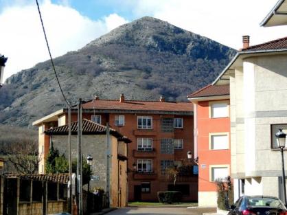 Una fábrica con el Pico Almonga de fondo,