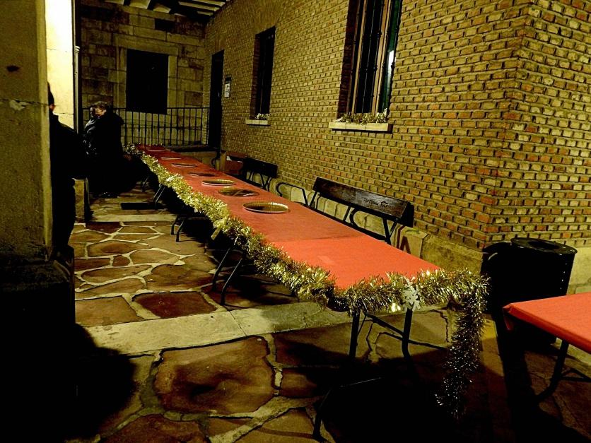 La mesa preparada para los dulces de la chiquillería,