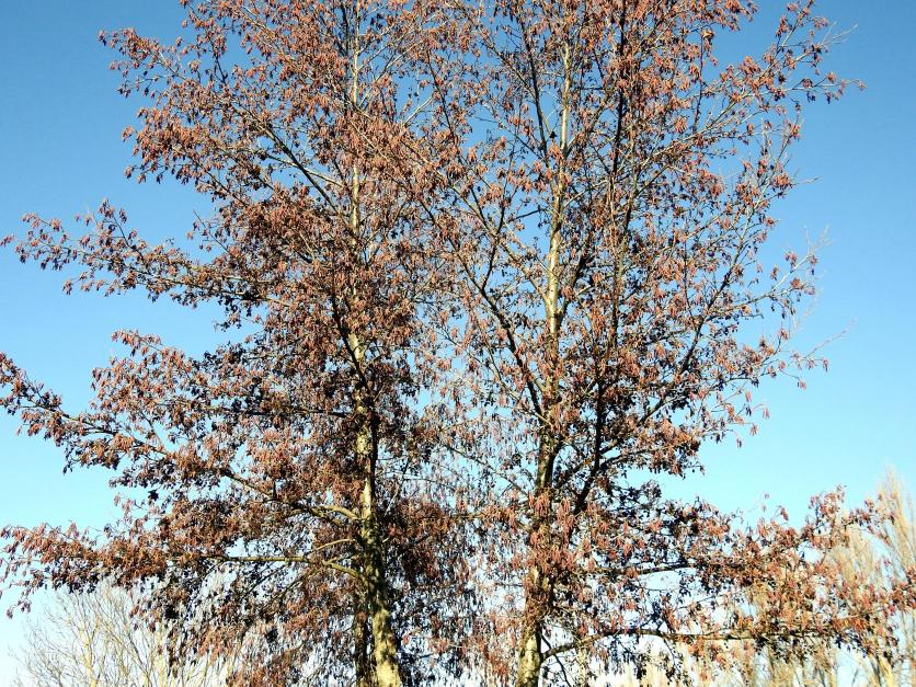 Un aliso (Alnus glutinosa) con sus amentos masculinos y conos femeninos,