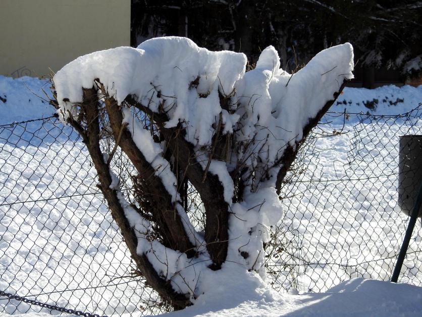Un seto podado, cubierto de nieve,