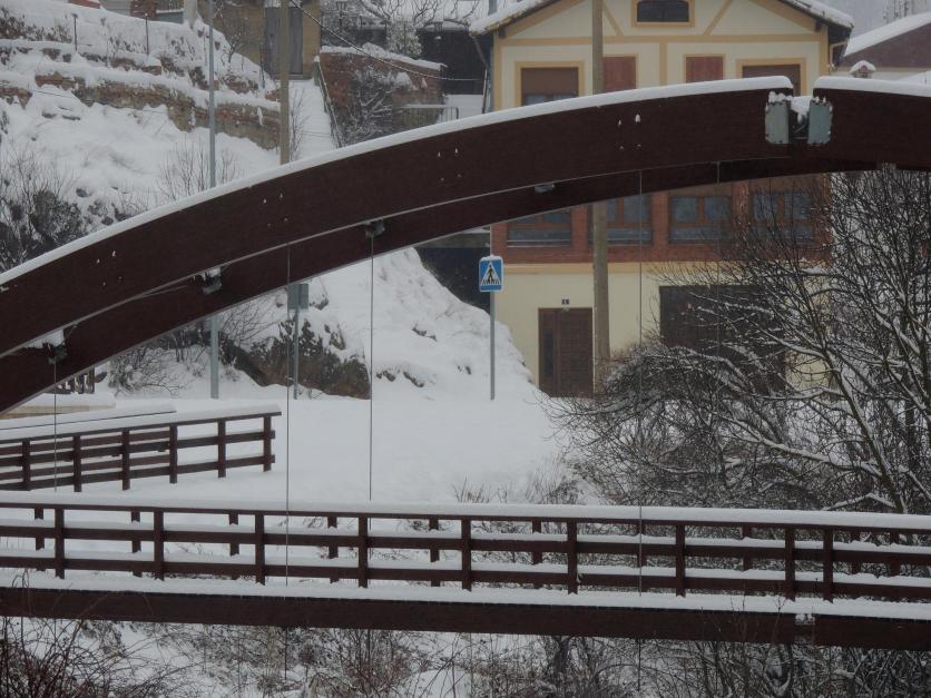La Pasarela de Barrio cargada de nieve,