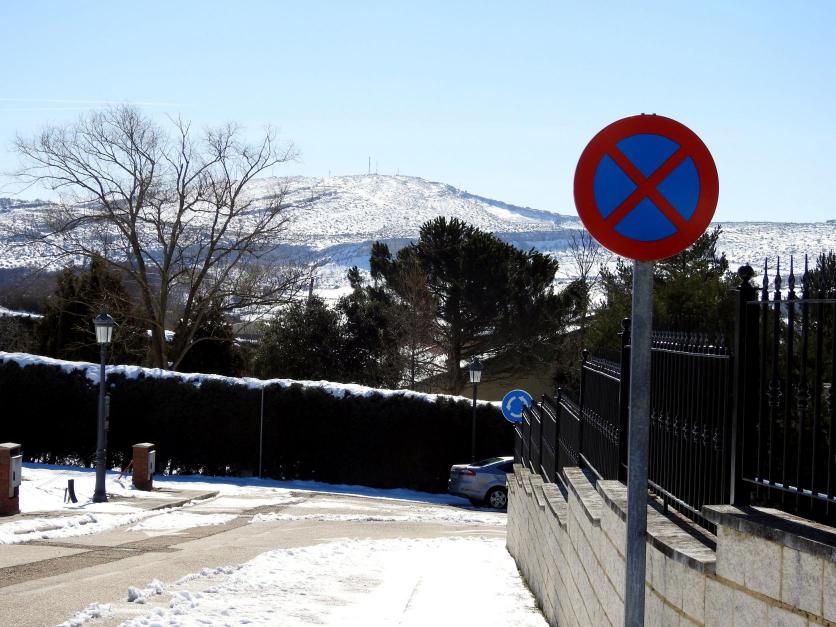 Salida de la urbanización con fondo de Cadéramo y sus torres de comunicación,