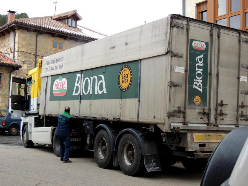 Un gran camión de piensos Biona,