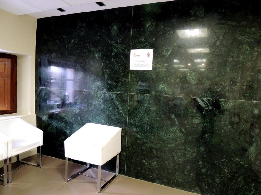 Pared de mármol verde de la oficina de Turismo,