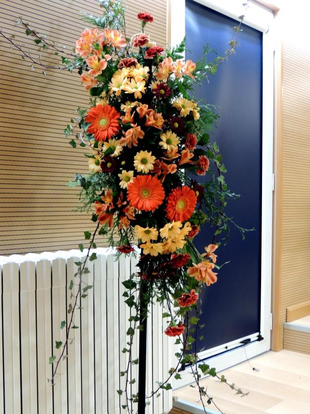 Un gran ramo de flores, adorna la sala,