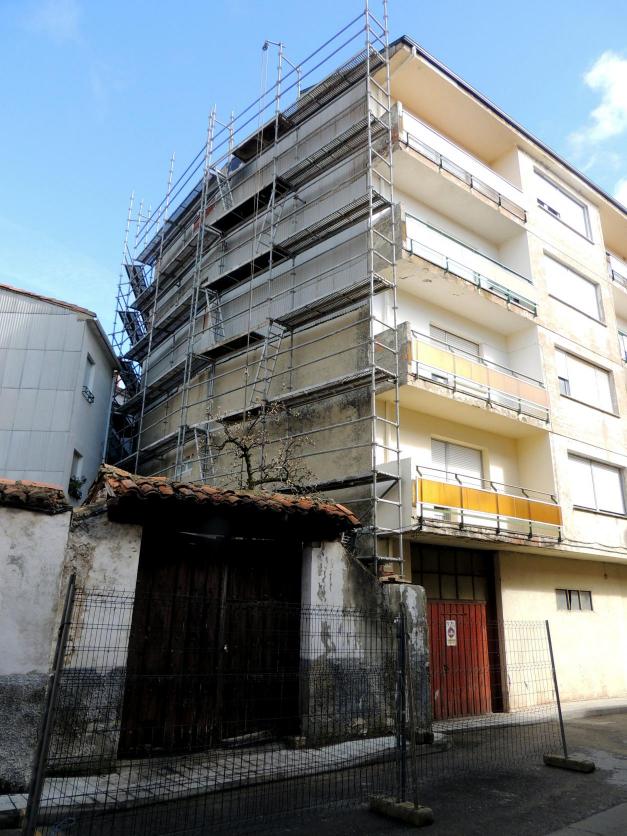 Un gran andamio para reparar una fachada, de la calle del Almirez,