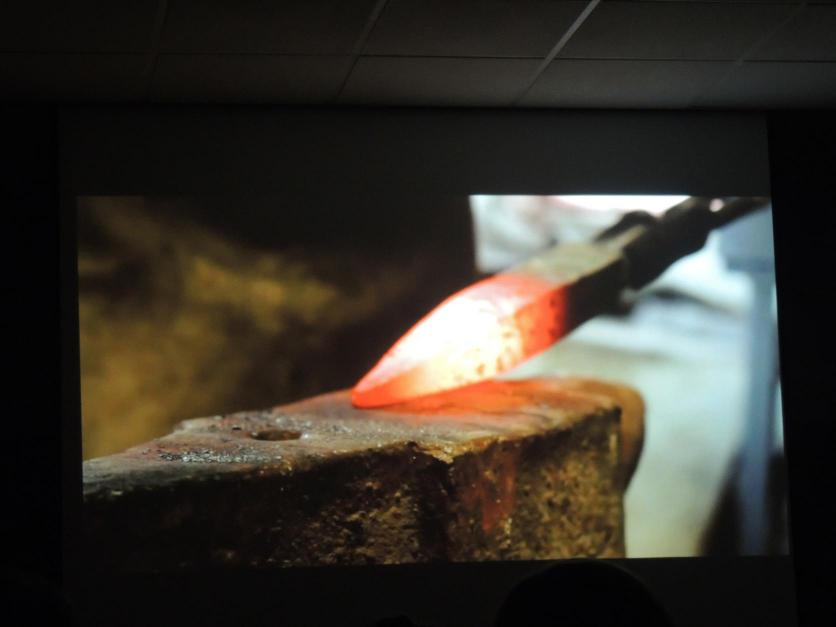 Tiempos antiguos. Un herrero trabajando una pieza agrícola,
