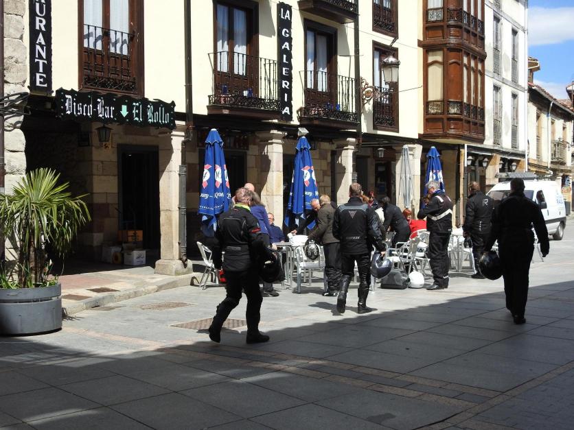 Llegan moteros con sus trajes negros, a la Plaza Mayor,