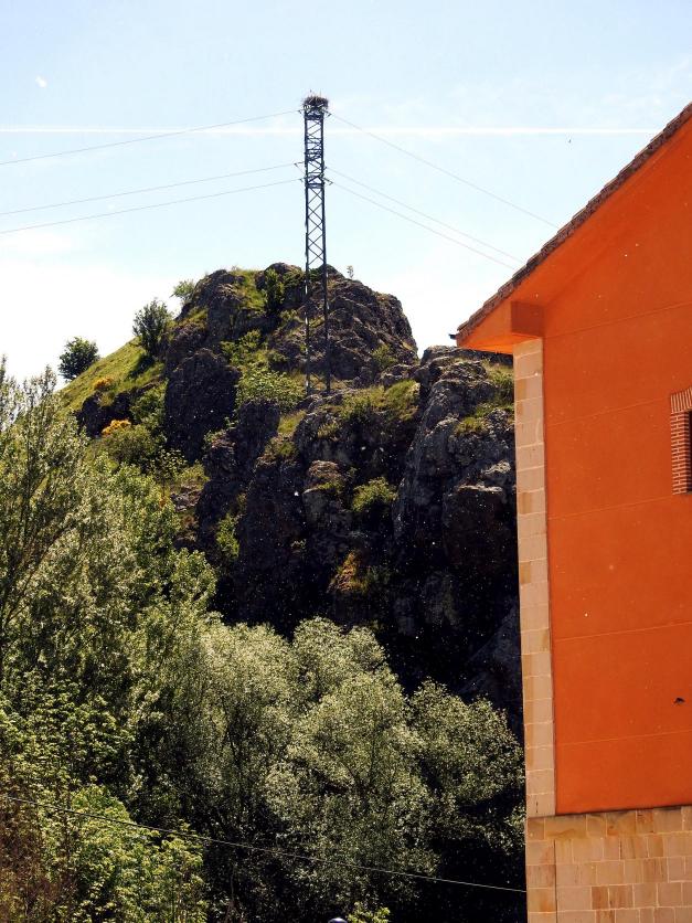 Torre eléctrica con nido, en la Peña Barrio,