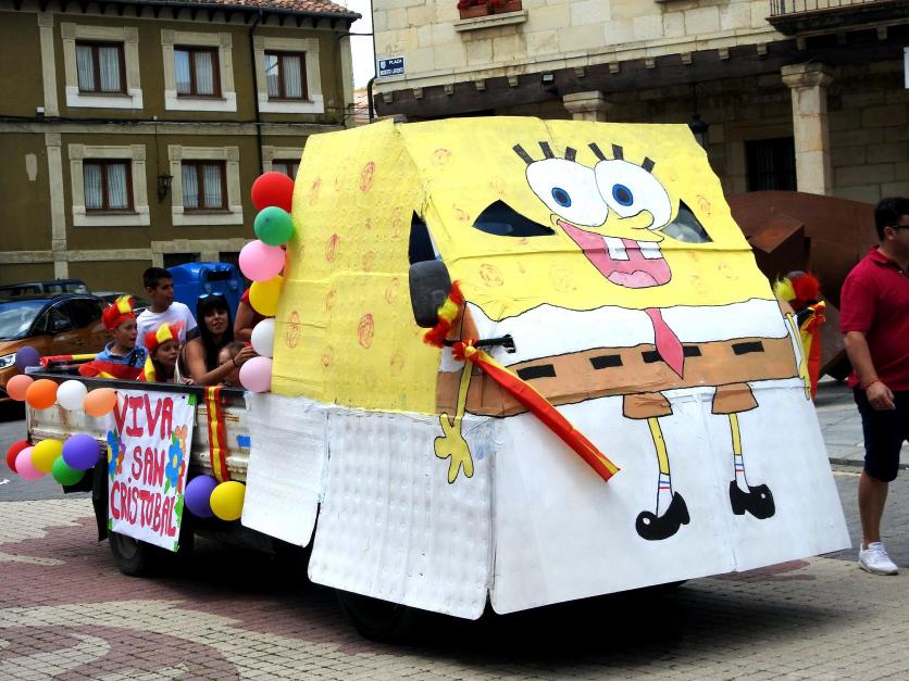 carroza cubierta su cabina con dibujos sobe cartón,