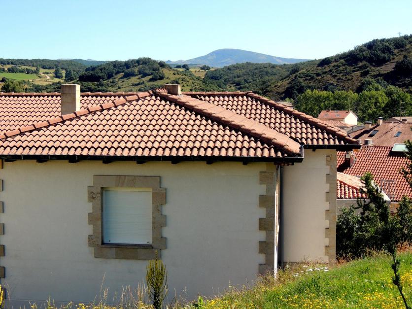 Casas del Valle con fondo de montaña,