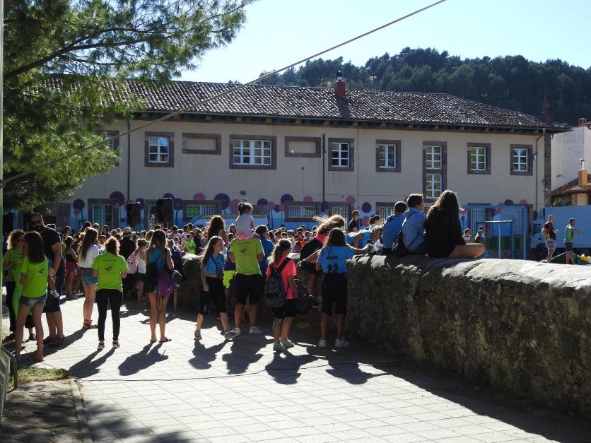 Ha terminado las comidas. Muchedumbre de jóvenes,