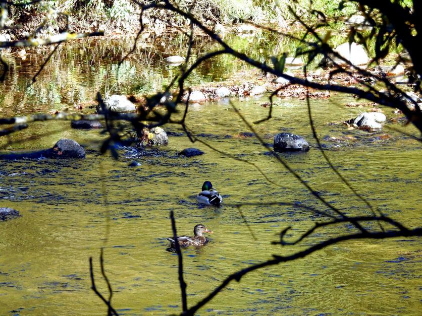 Una pareja de azulones en el río,