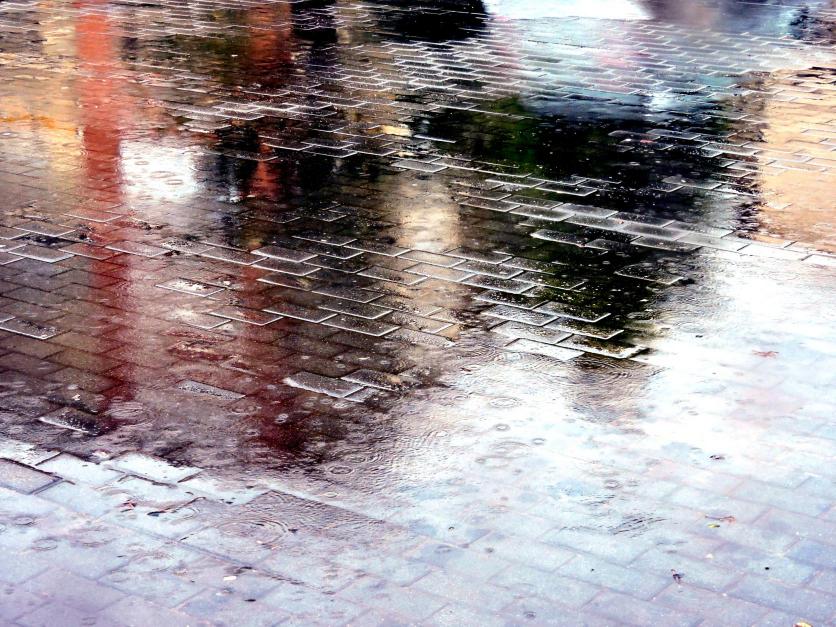 Reflejos de color en el agua de lluvia,