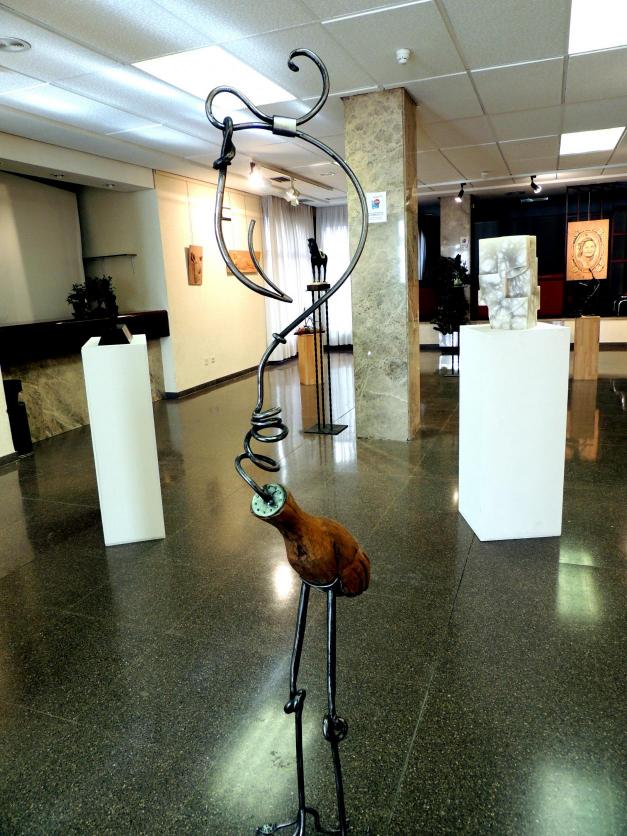 La singular figura de un ave en alambre y madera,