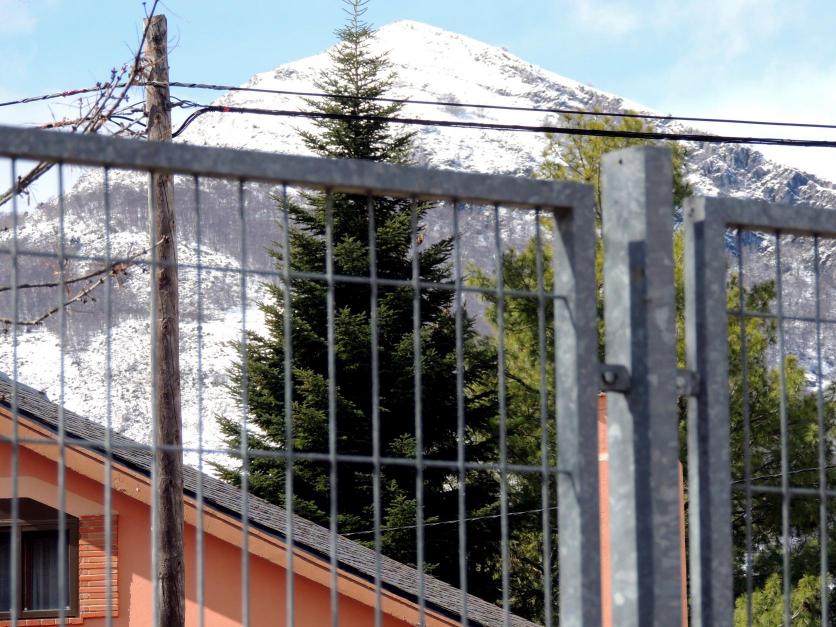 Coníferas y Pico detrás de una valla metálica,