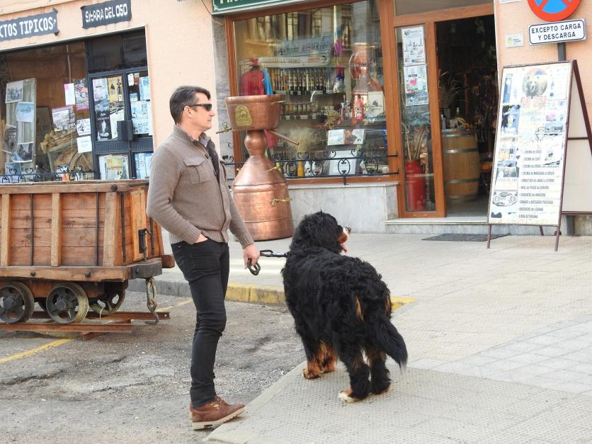 Perro lanoso con su dueño,
