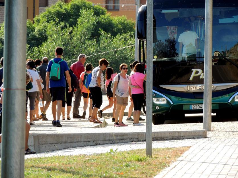 Los visitantes de la Villa, regresan a su autocar,