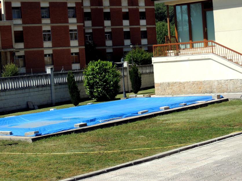 La piscina de los Villanueva todavía cubierta,