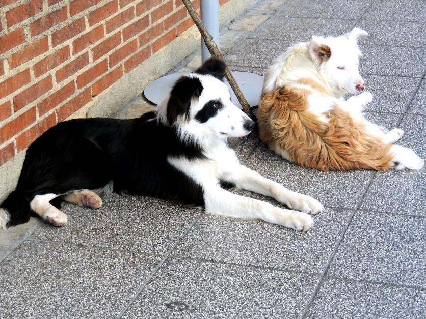 Dos perros junto al bastón de su amo,