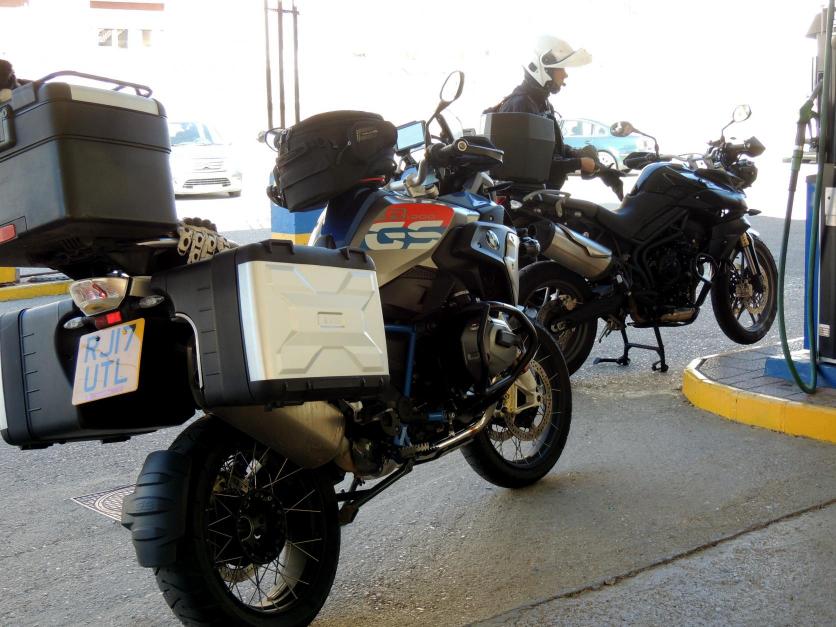 moteros en la Estación de servicio,