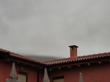Tejado, chimenea y fachada Sur cerrada,