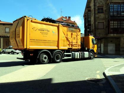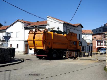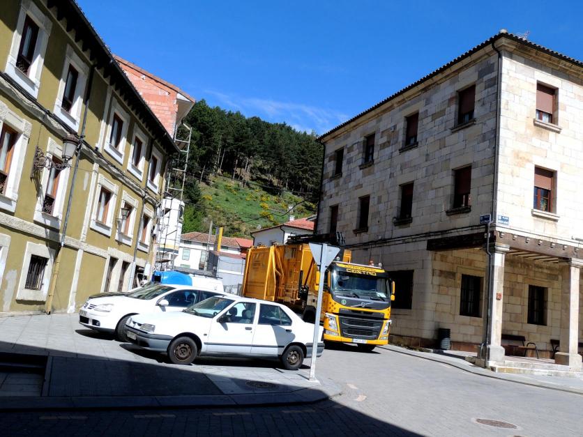 La calle La Lonja, bloqueada por el camión recoge basuras,