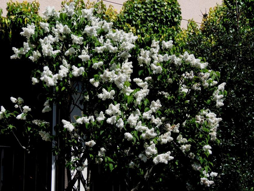 Un lilar blanco cargado de flores,