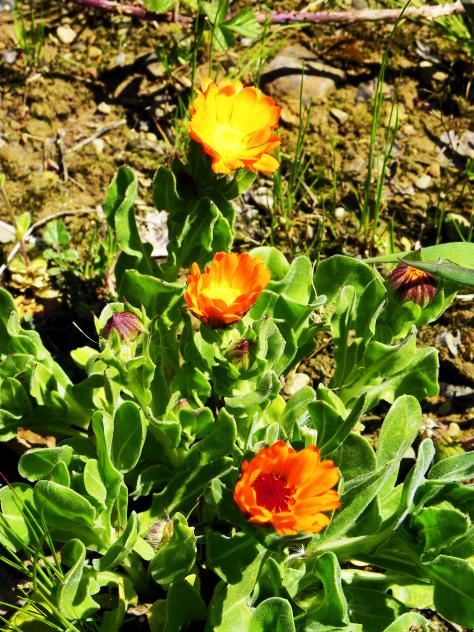 Caléndulas oficinales, posiblemente escapadas, ya que es una de las plantas usadas en el entorno casero.