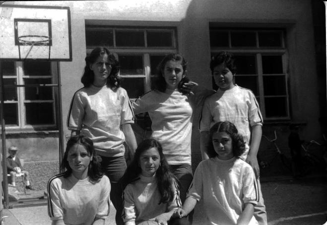 Las cinco muchachas de octavo que participaron ese día de final de curso, en la exhibición de baloncesto femenino...