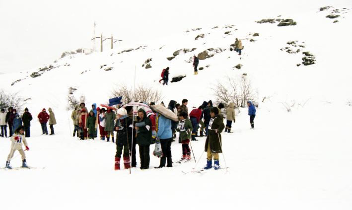 El tiempo no acompañó, pero profesores y alumnos demostraron su fortaleza. Ya con paraguas en la parte baja, se apuntan cuidadosamente los resultados.