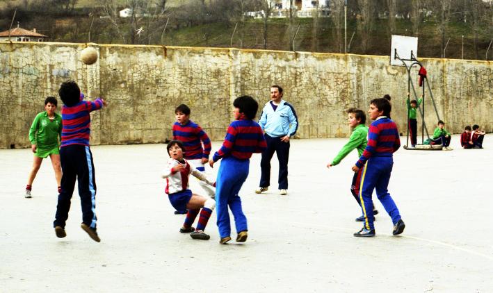 Partido de futbito con su entrenador-árbitro,