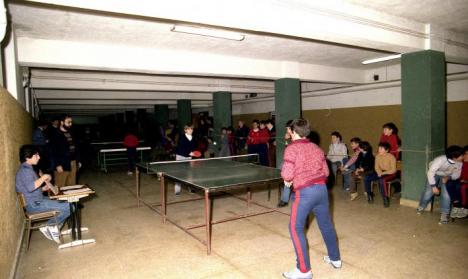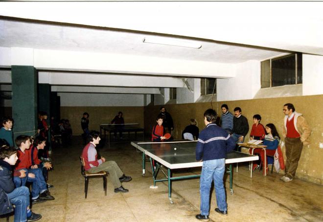 Hogar una partida de pimpong con asistencia de compañeros, de profesores y de entrenadores...