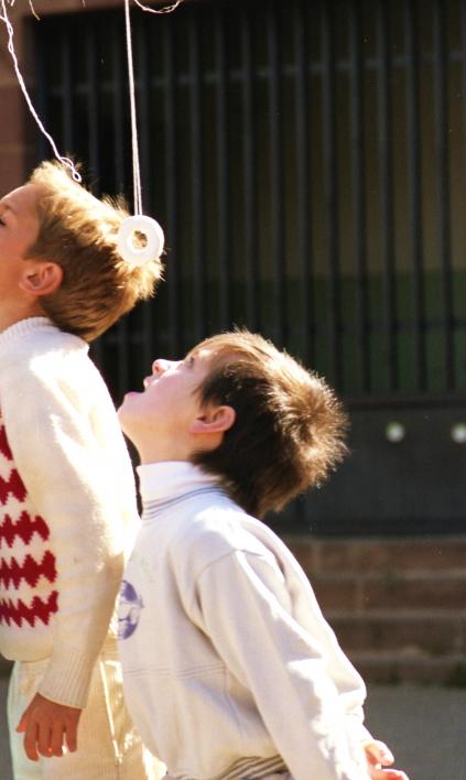 de las rosquillas, con dos niños, el alto aprovechando su estatura...