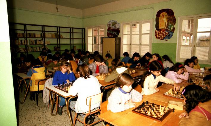 Otro sábado de lucha, niñas en primer término y niños en segundo, peleando con sus contrarios para terminar la partida con un "jaque mate"...