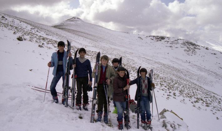 Los seis esforzados muchachos respirando profundamente antes de bajar cuatrocientos metros hacia el