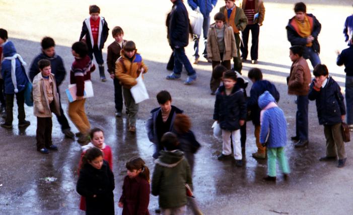 Niños sobre el hielo de la Plaza,