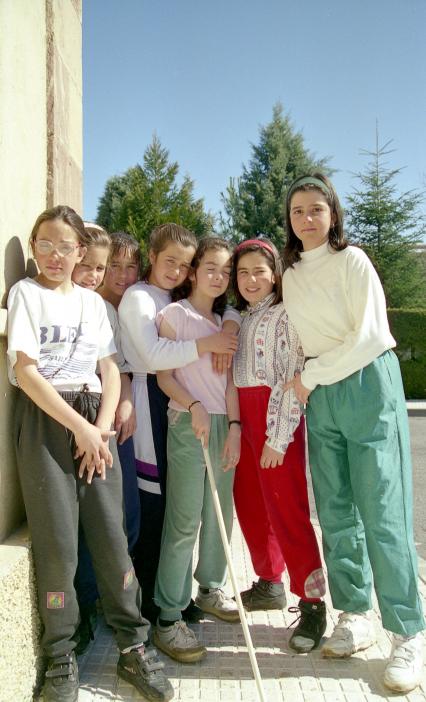 Con la ciega camino del parque,