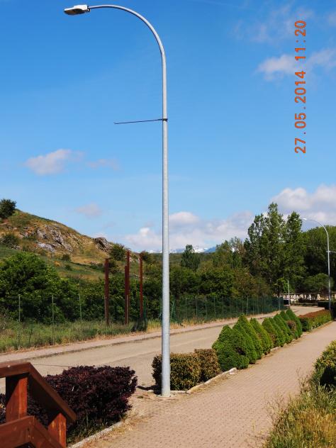 urbanizado, con un parterre a la izquierda de plantas apropiadas, con el