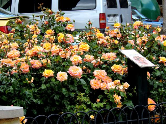 Cada parterre de rosas tiene la